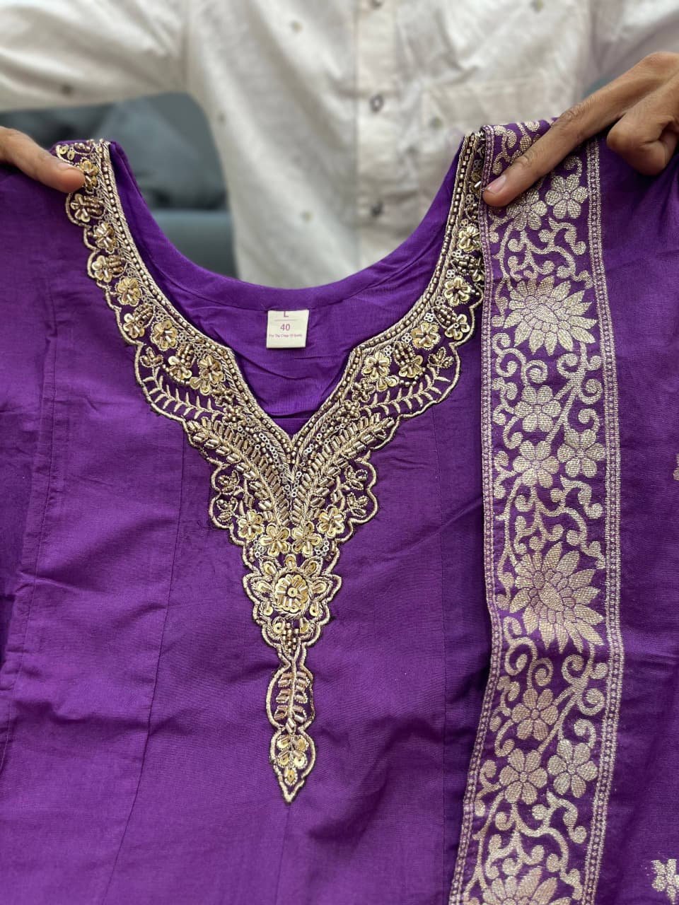 Elegance that speaks without words! A premium Anarkali style outfit crafted on chanderi base fabric with beautiful hand-worked neckline & Banarasi zari weaving detailing on the flare and dupatta. Perfect choice for wedding, party & festive functions. Elegance that speaks without words! A premium Anarkali style outfit crafted on chanderi base fabric with beautiful hand-worked neckline & Banarasi zari weaving detailing on the flare and dupatta. Perfect choice for wedding, party & festive functions.