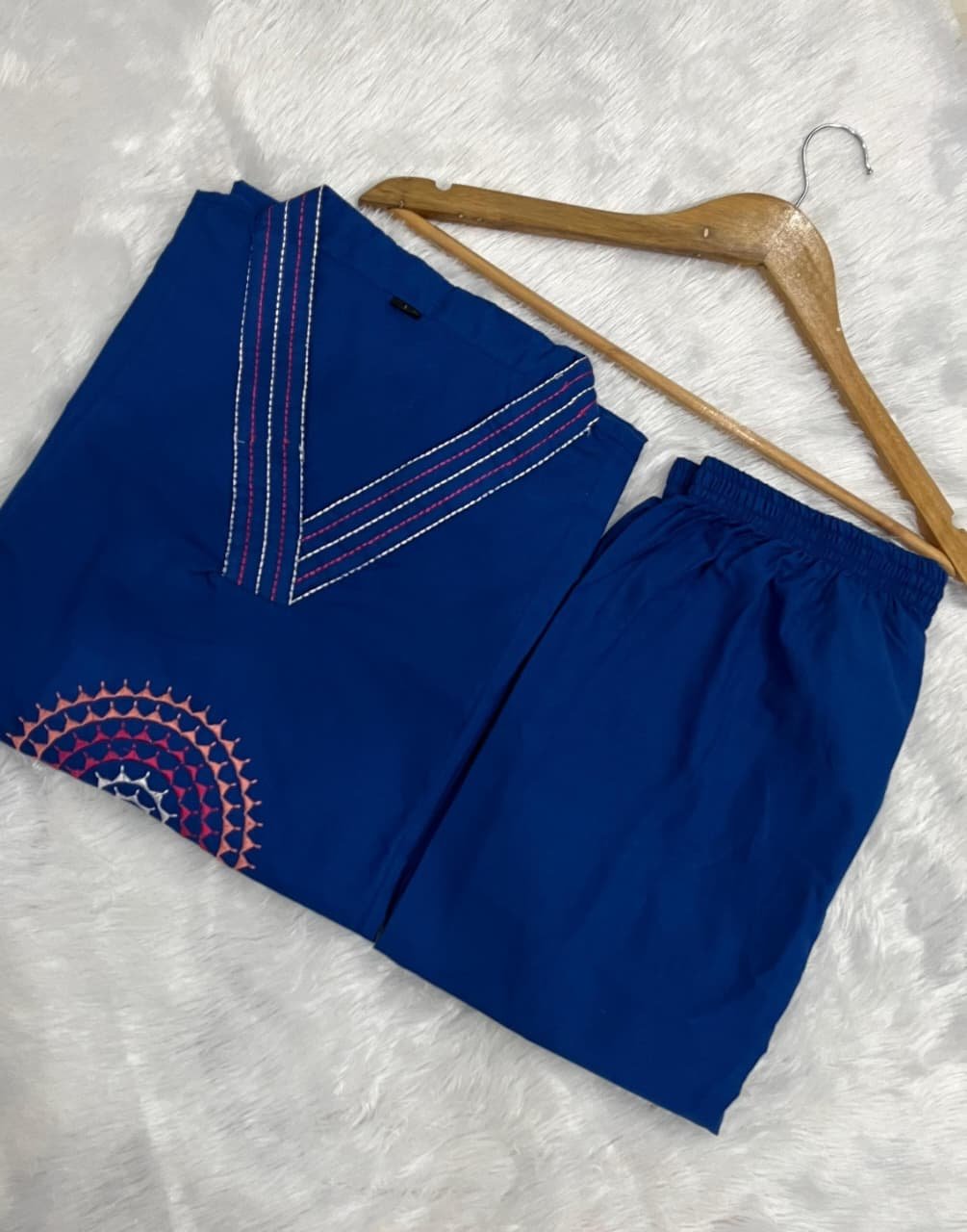 Pure fine Cotton fabric Embroidery Work Kurti with Pant with cotton 100-100 A-line