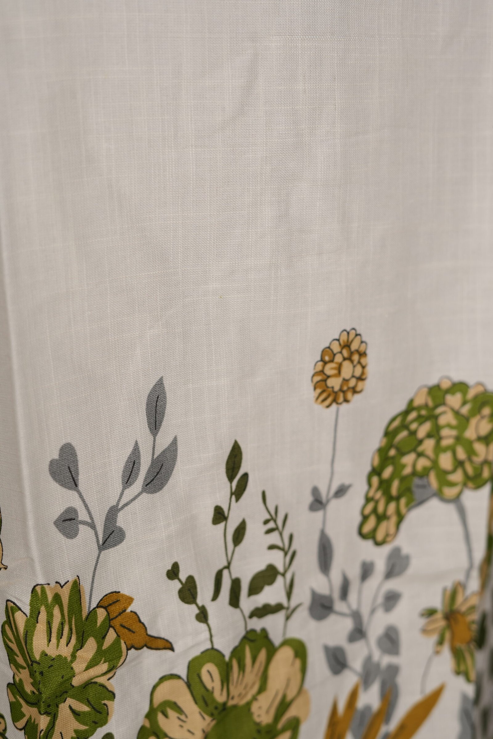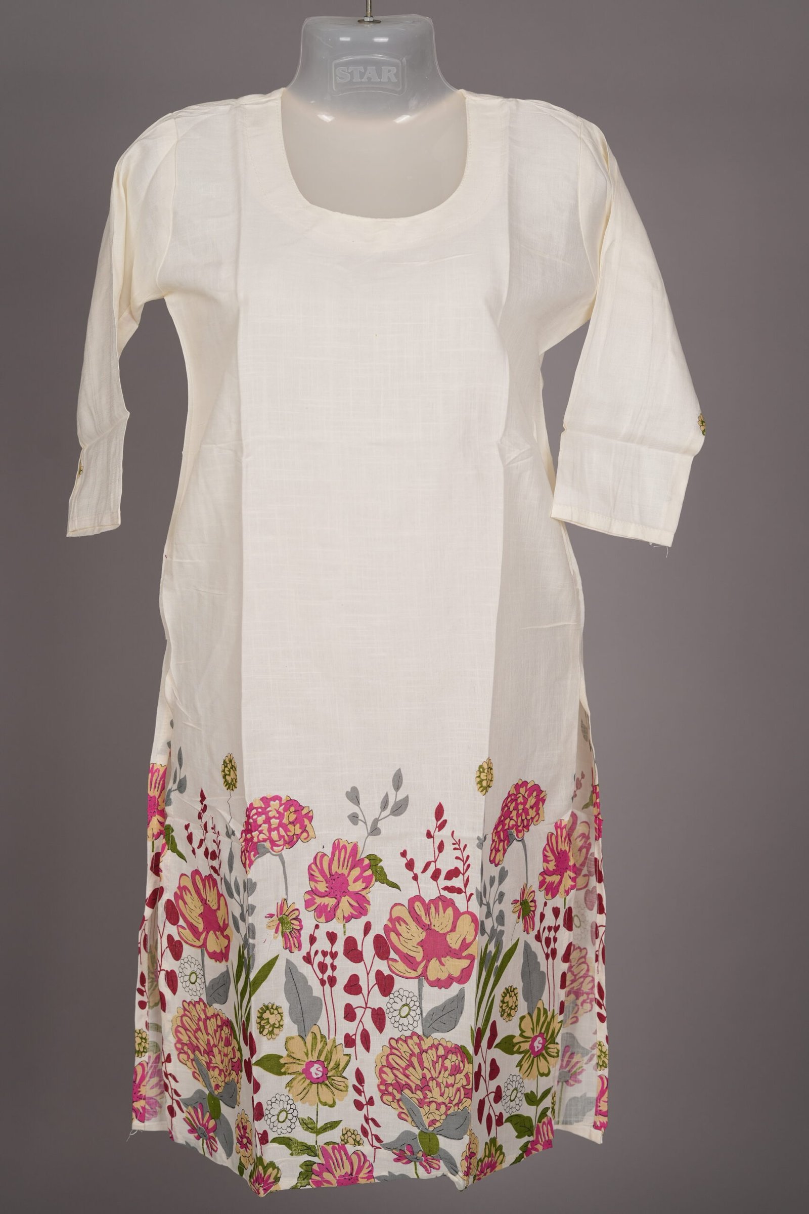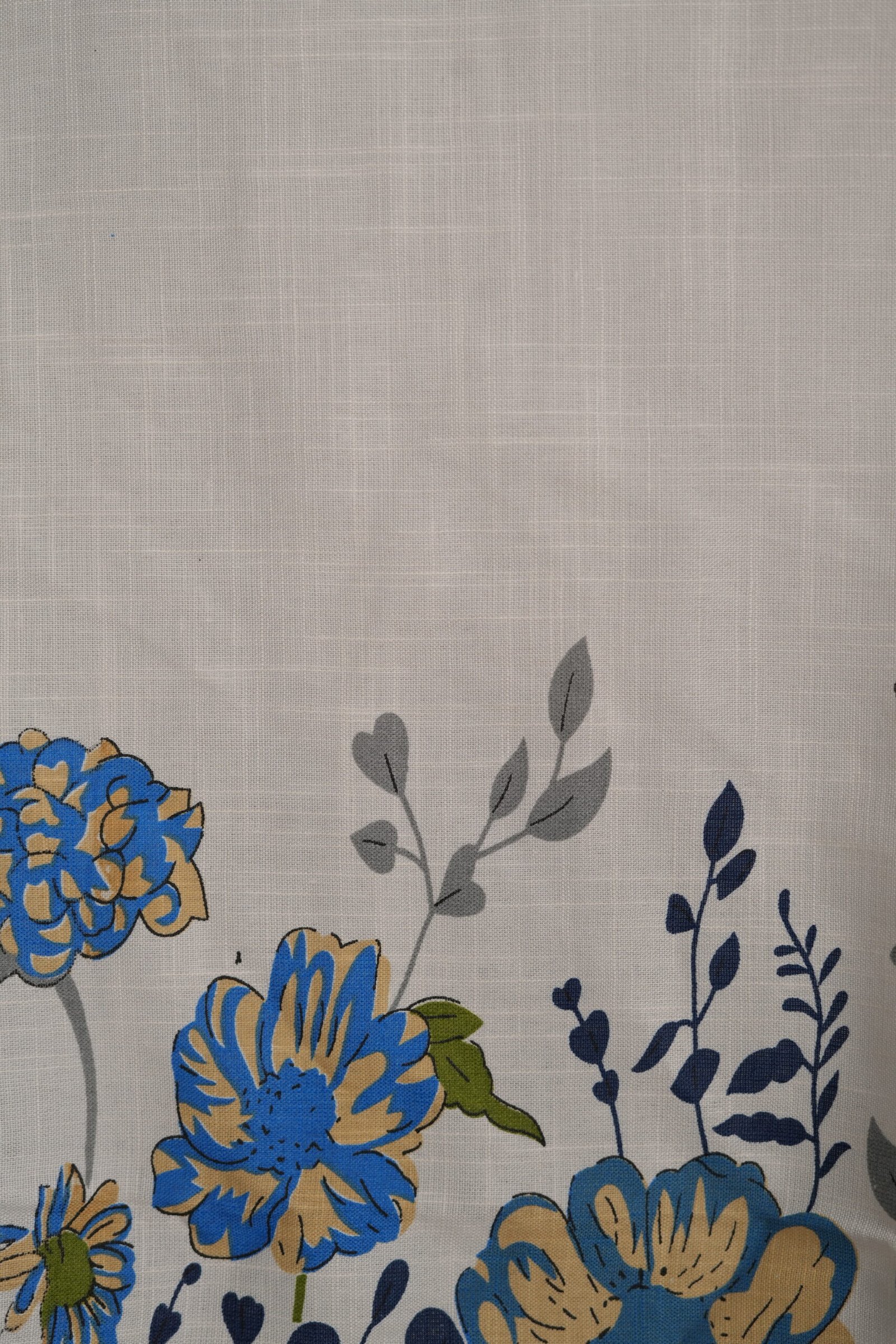 • Design: The key feature is the wide, digital printed floral border that wraps around the bottom half of the garment, starting from roughly the knee area and extending to the hem.