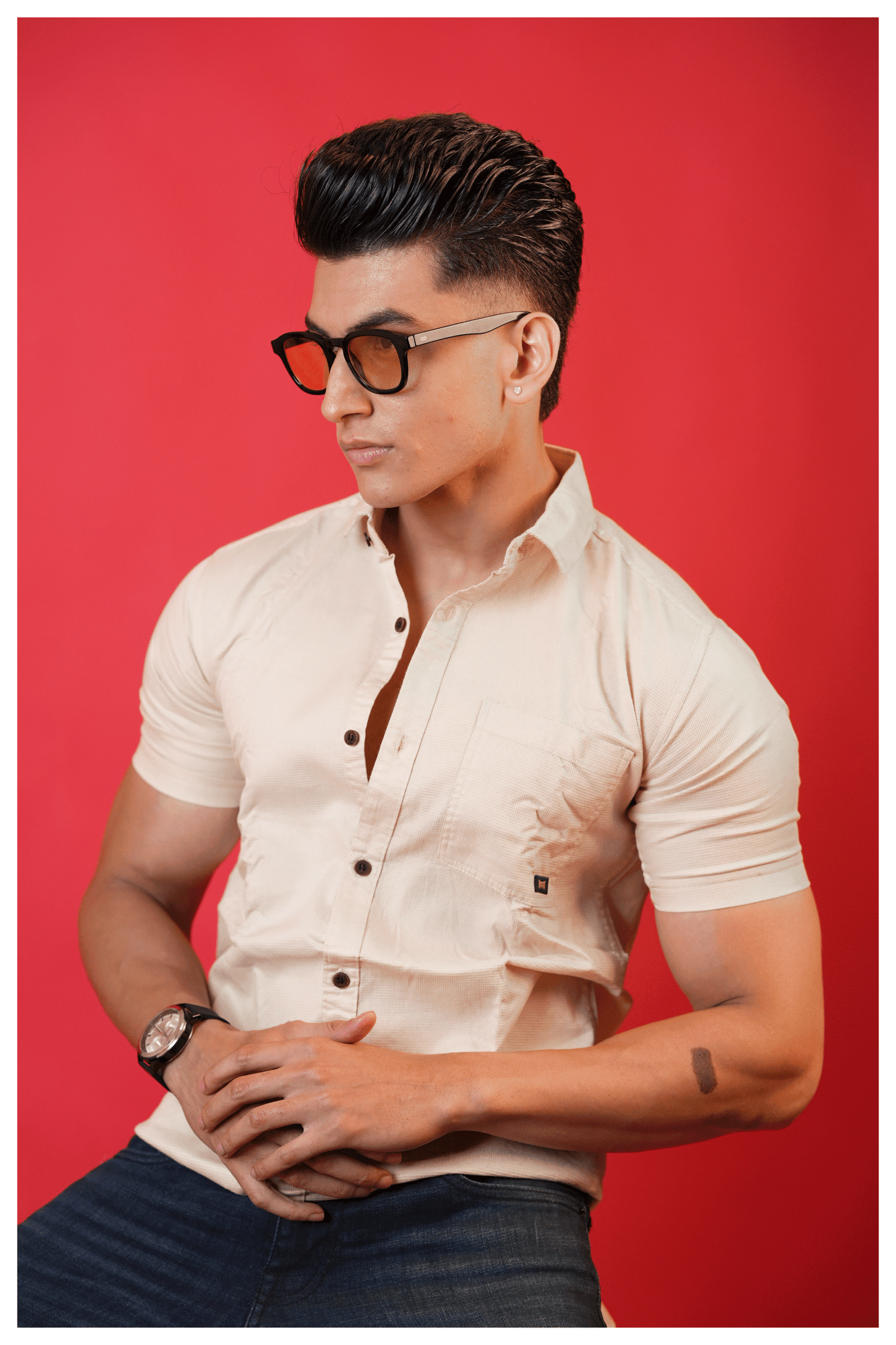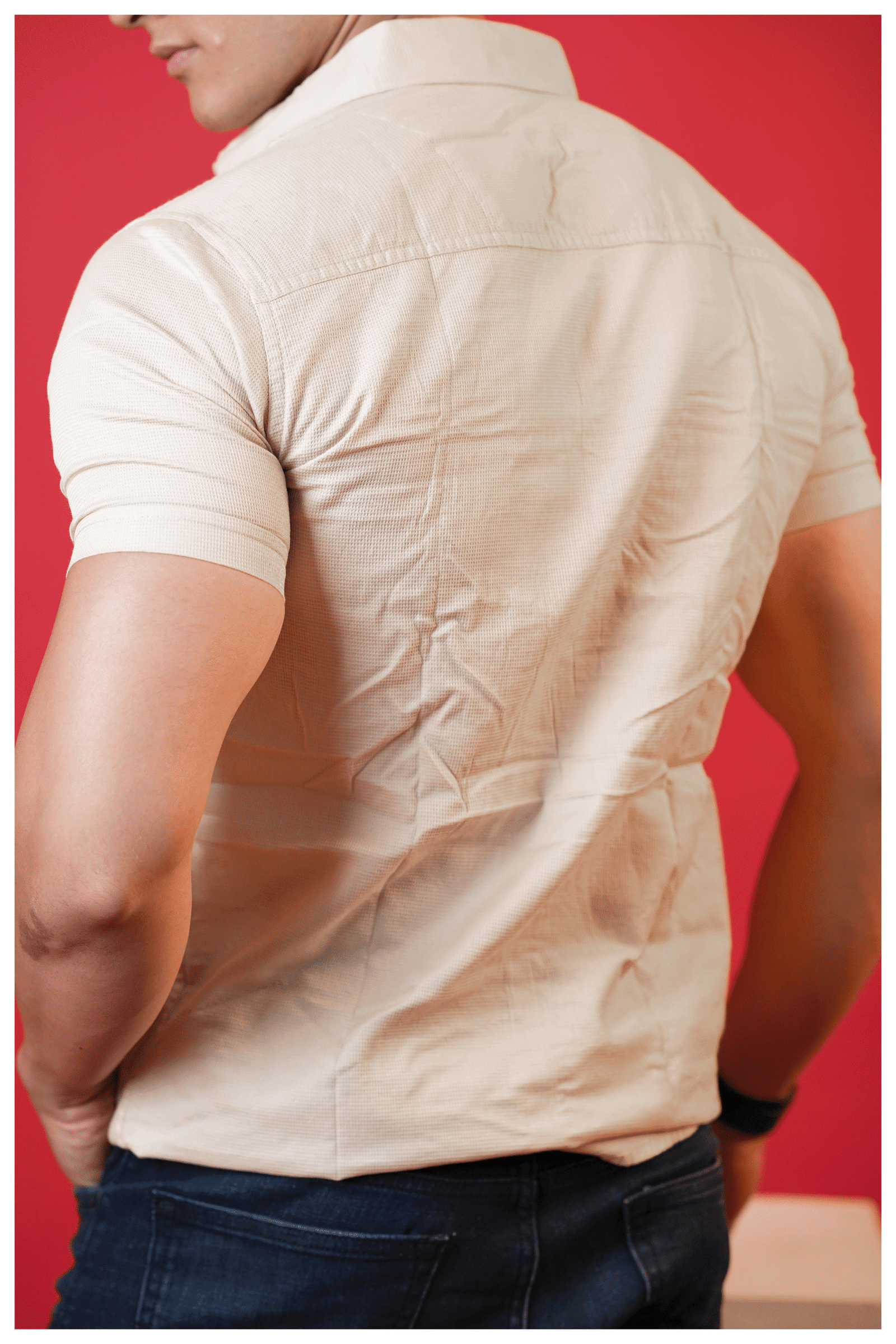 Color: The shirt is a versatile light cream tone, which offers a clean, neutral aesthetic.