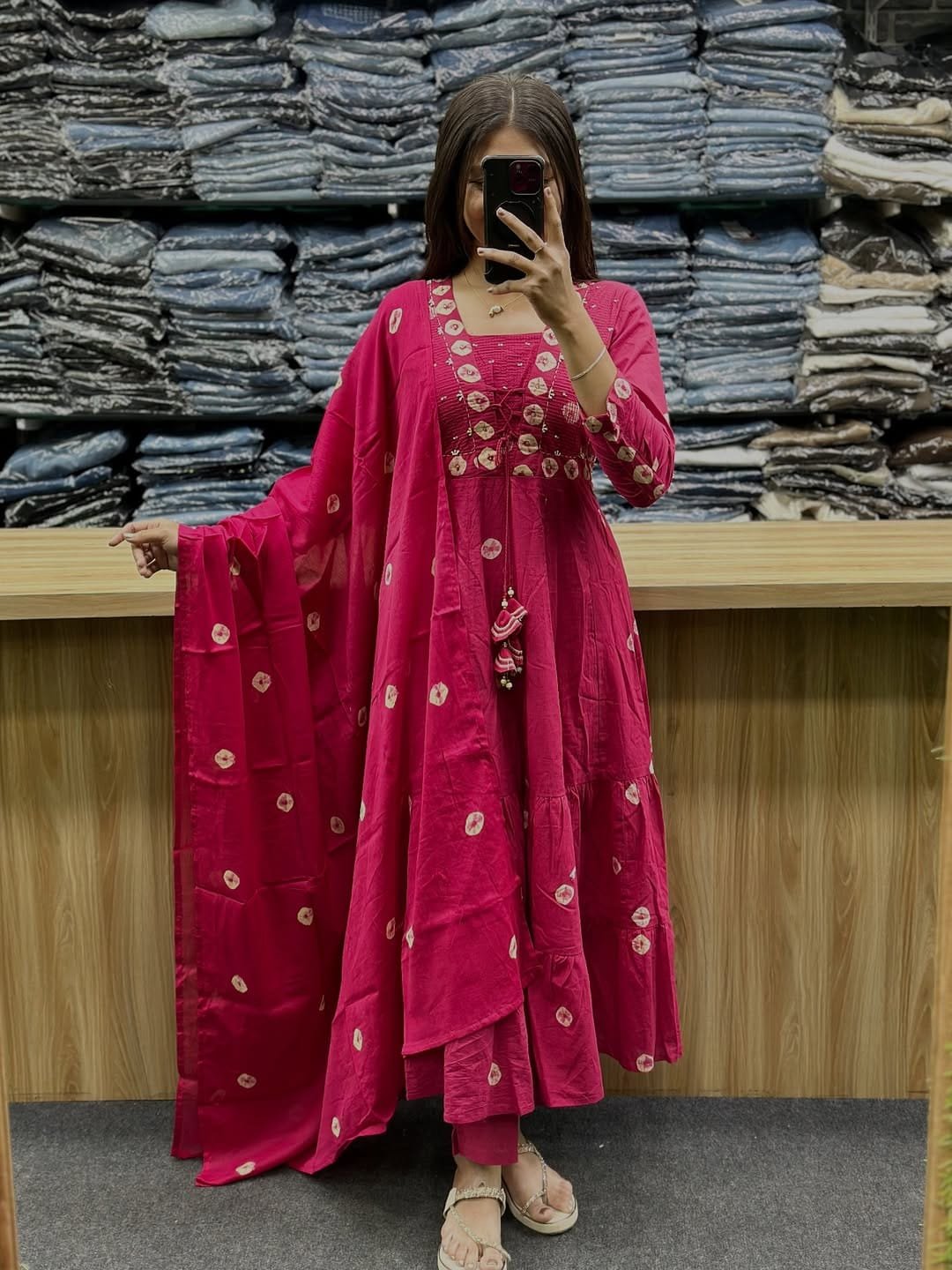 Fabric pure otton 60 60 kurta with hand work & Paired with pant and cotton duppata printed